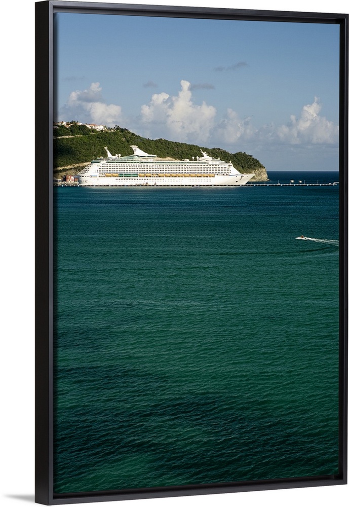<p>Royal Caribbean cruise ship in port at Great Bay, Philipsburg, St. Maarten (Dutch side of island), Caribbean.</p>