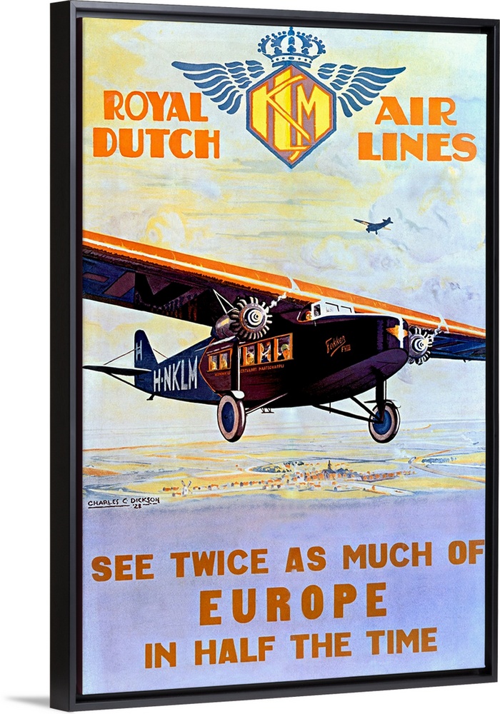 <p>Canvas wall art of an old advertisement for an airline company in Europe.</p>