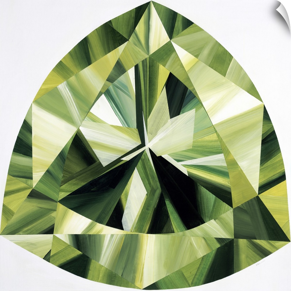 <p>A painting of a green, trilliant shaped gemstone.</p>