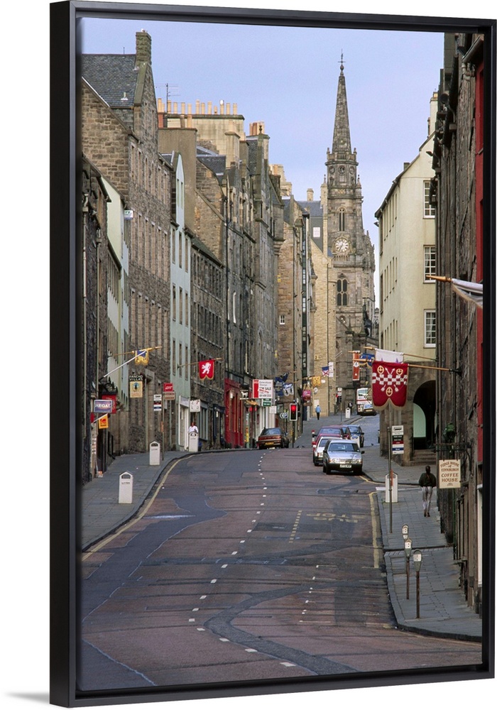 <p>Saint Giles' Cathedral towers over the buildings of the Royal Mile in the Old Town district of Edinburgh. | Location: Old Town, Edinburgh, Lothian, Scotland, UK.</p>