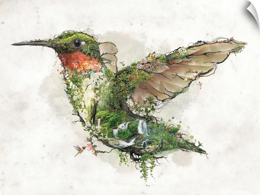 Art Eclectic Contemporary Art Florals Revisited Graphic Art Green Wall Art Surrealism Wildlife Bird Hummingbird
