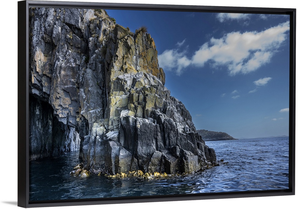<p>Rugged rock formations along the coast of Bruny Island in the Pacific Ocean, Tasmania, Australia; Bruny Island, Tasmania, Australia.</p>