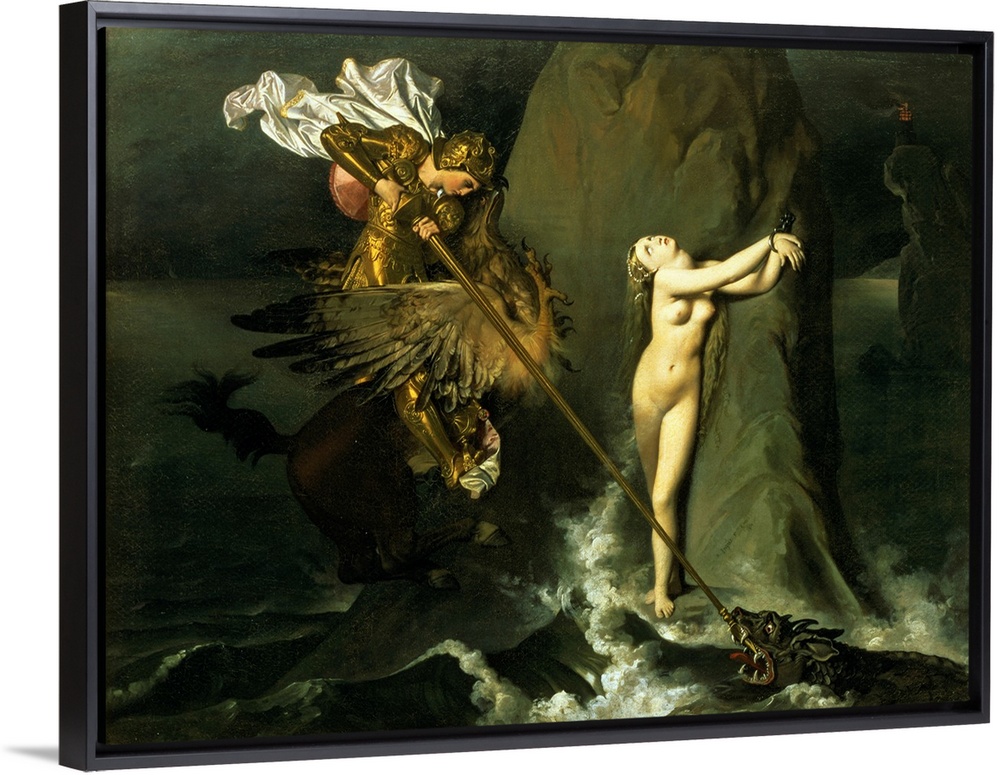 <p>XIR59757 Ruggiero Rescuing Angelica, 1819 (oil on canvas); by Ingres, Jean Auguste Dominique (1780-1867); 147x199 cm; Louvre, Paris, France; Giraudon; French, out of copyright</p>
