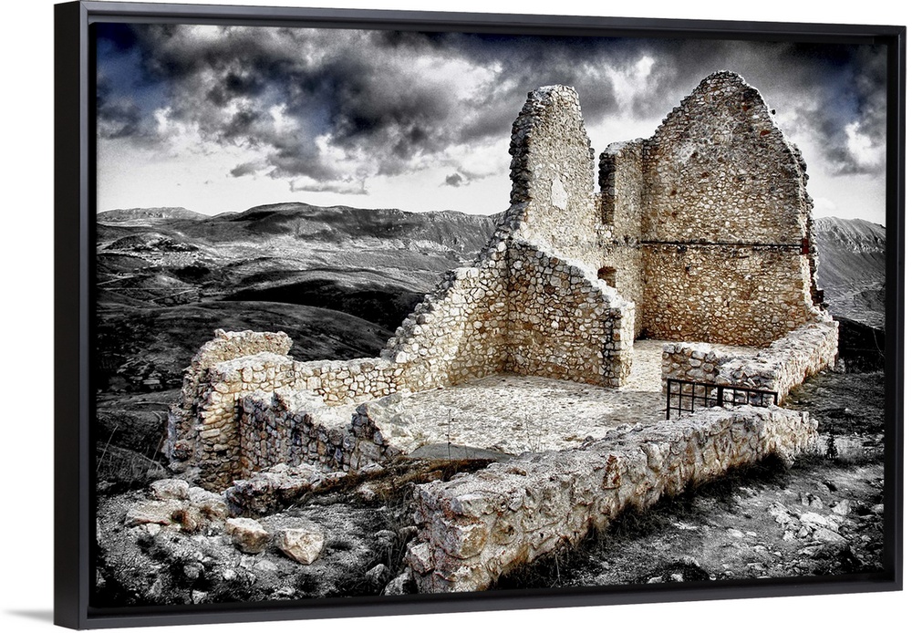 <p>Ruins of Rocca Calascio, a mountaintop fortress or rocca in the Province of L'Aquila in Abruzzo, Italy. At an elevation of 1460 metres, the Rocca of Calascio is the highest fortress in the Apennines. Built of stone and masonry exclusively for military purposes and intended only to accommodate troops and never as residence for nobles, the fortress overlooks the Plain of Navelli at one of the highest points in the ancient Barony of Carapelle, Abruzzo, Italy</p>