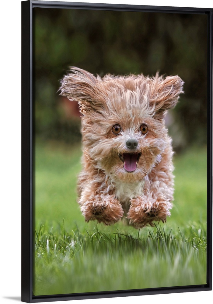 <p>A puppy running excitedly through the grass.</p>