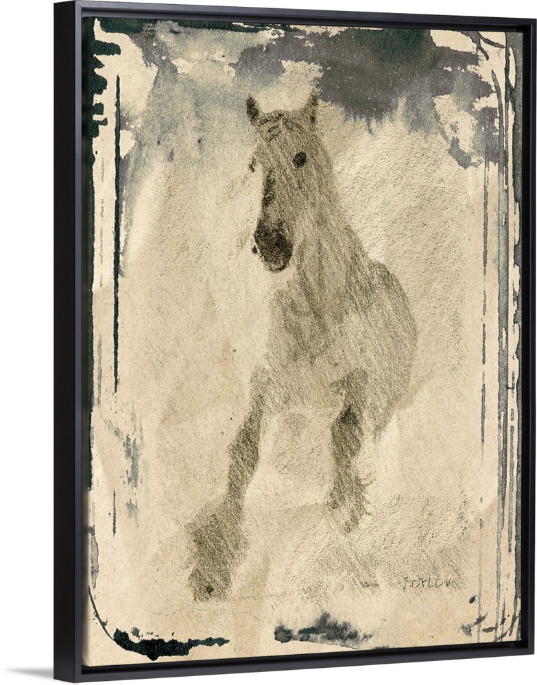 <p>Painting of a running white horse in watercolors.</p>
