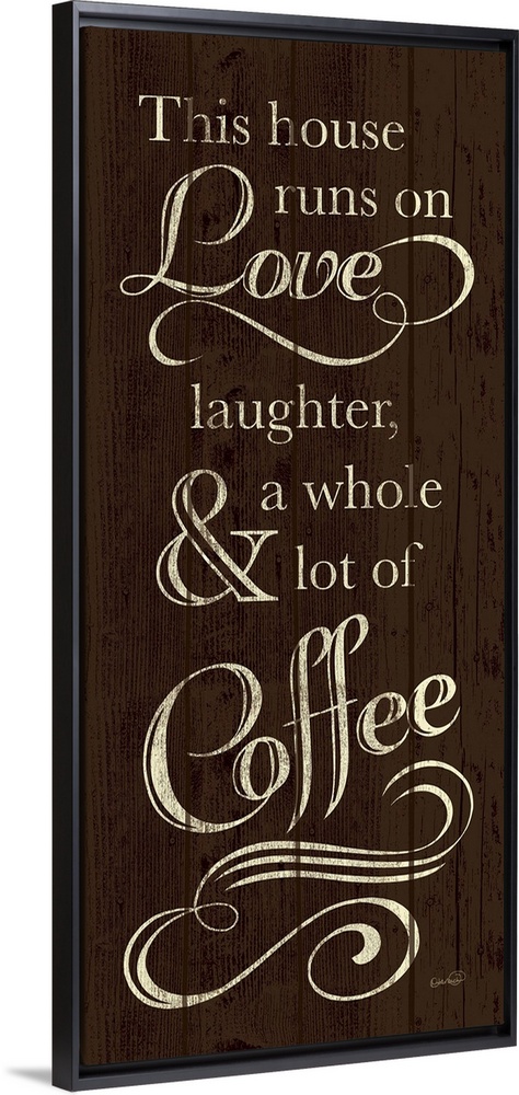 <p>"This house runs on love, laughter, and a whole lot of coffee" in brown and cream hues.</p>