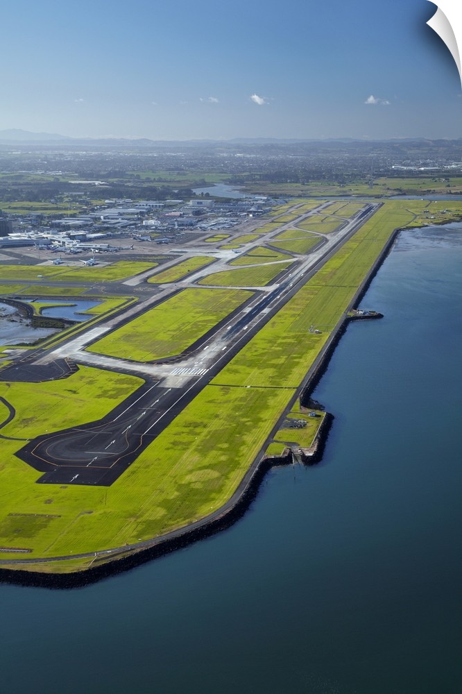 <p>Runway at Auckland Airport, and Manukau Harbour, North Island, New Zealand.</p>