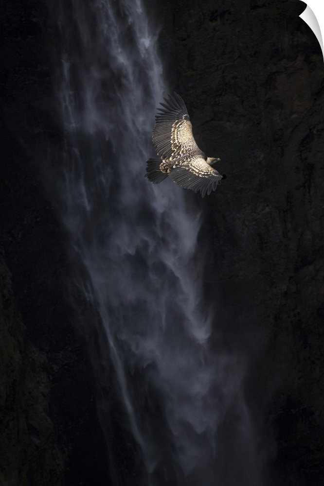 <p>Ruppell's vulture (Gyps rueppelli), also called Rppell's griffon vulture in front of Jinbar waterfalls, Simien Mountains National Park, Ethiopia</p>