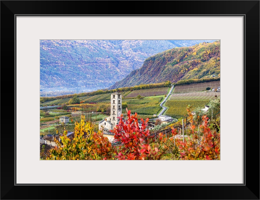 <p>Rural church in the vineyards and apple orchards, Valtellina, Lombardy, Italy, Europe</p>