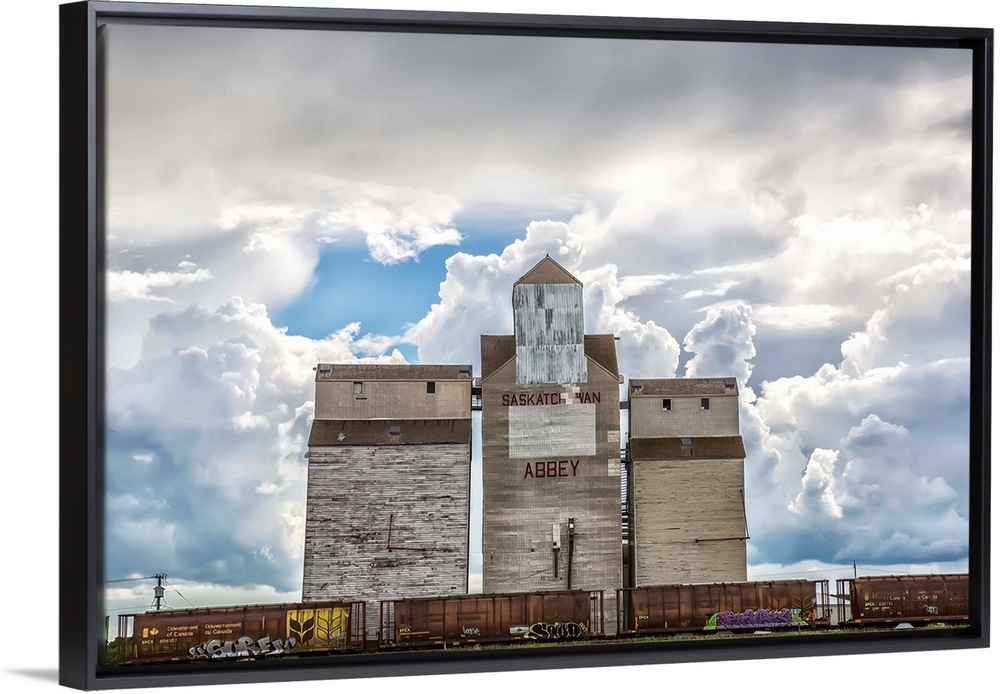 <p>Rural grain elevator with cumulonimbus clouds building up around it, Saskatchewan, Canada.</p>