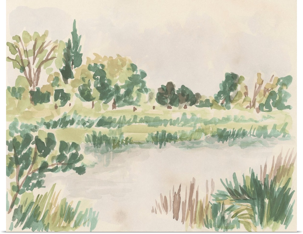 Art Landscapes Countryside Lake Painting June Erica Vess Watercolor