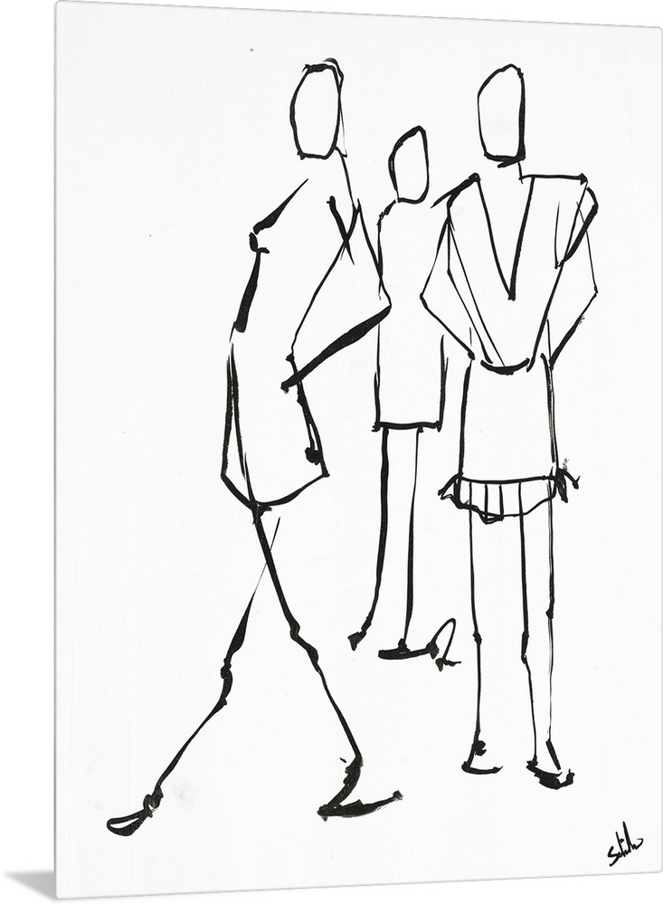<p>Contemporary figurative artwork of human forms in simple structure against a white background.</p>