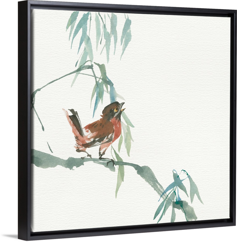 <p>Contemporary painting of a bird perched on a drooping branch.</p>