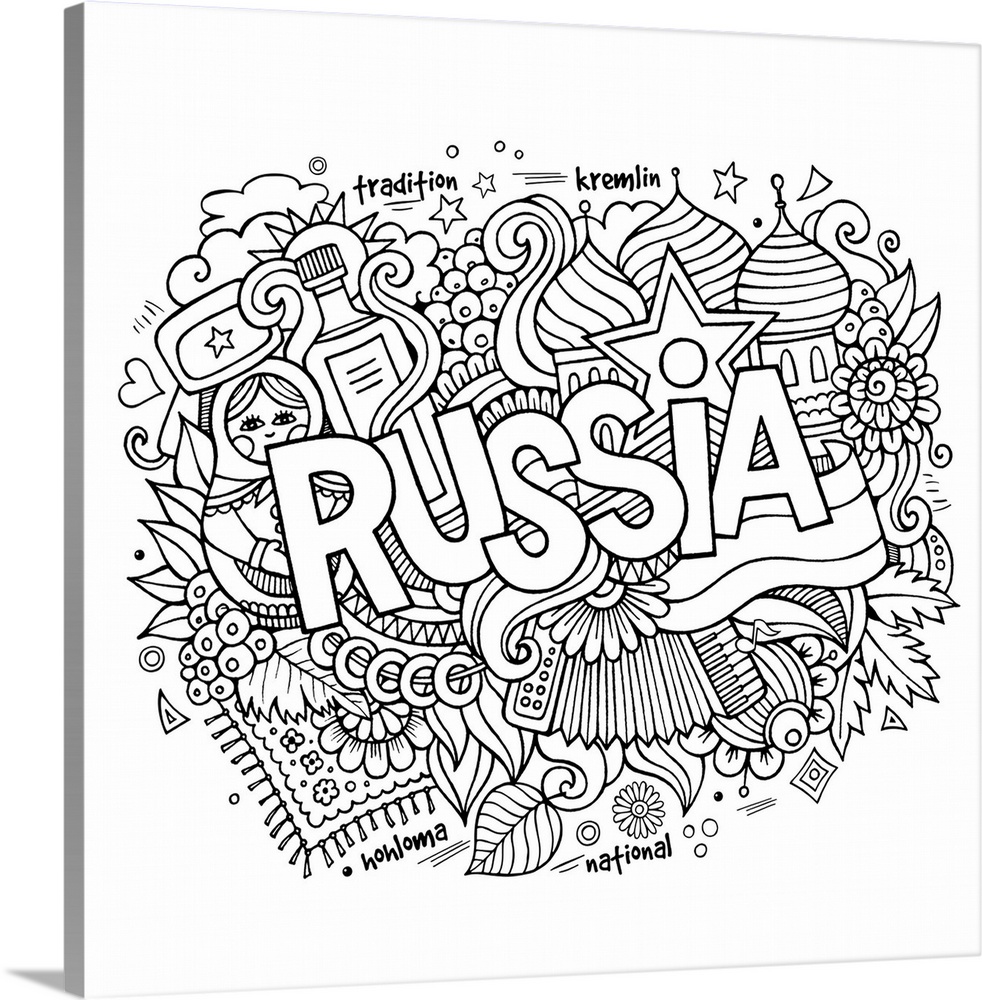<p>An assortment of Russian-themed items such as a Matryoshka doll and onion domes. Perfect for coloring canvas.</p>