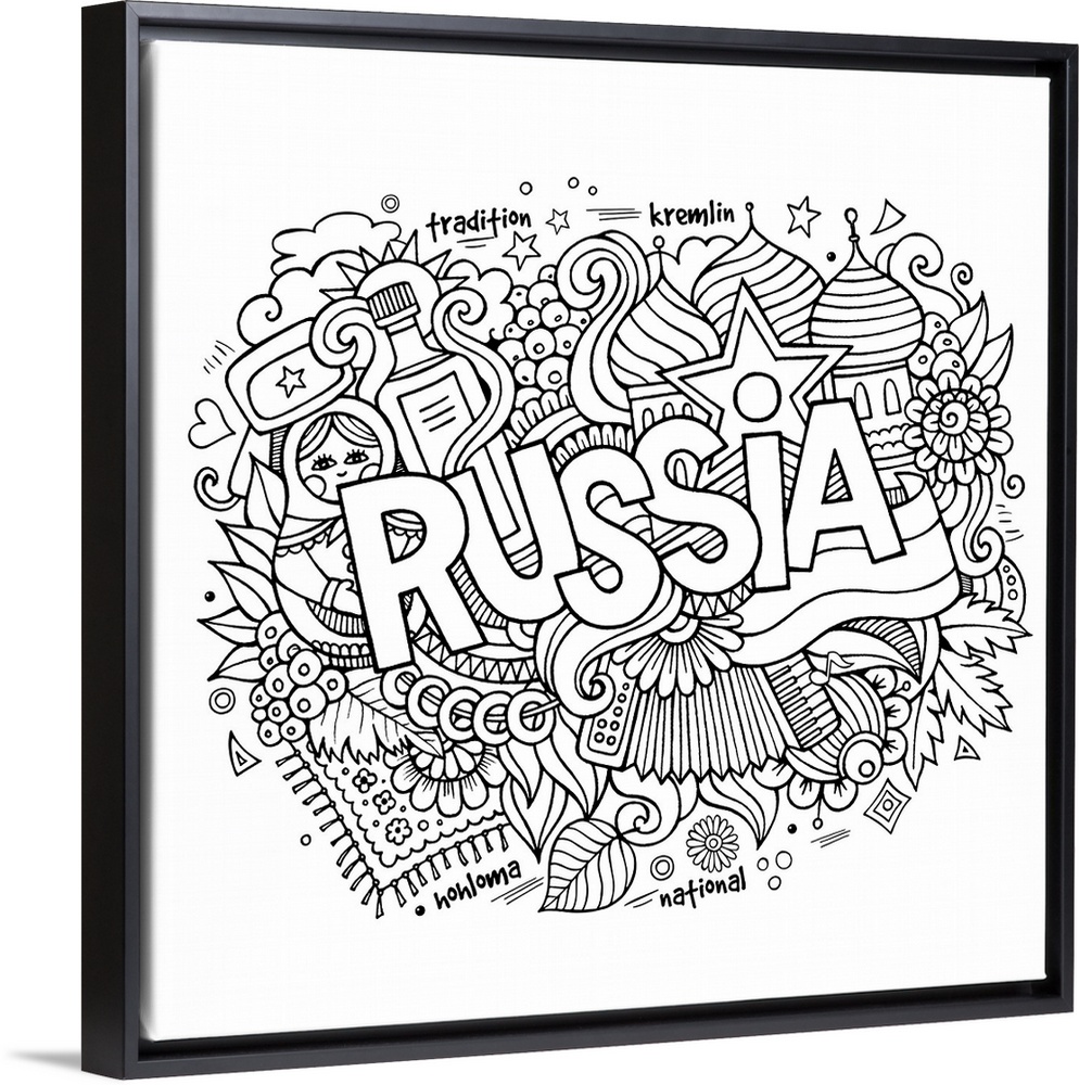 <p>An assortment of Russian-themed items such as a Matryoshka doll and onion domes. Perfect for coloring canvas.</p>