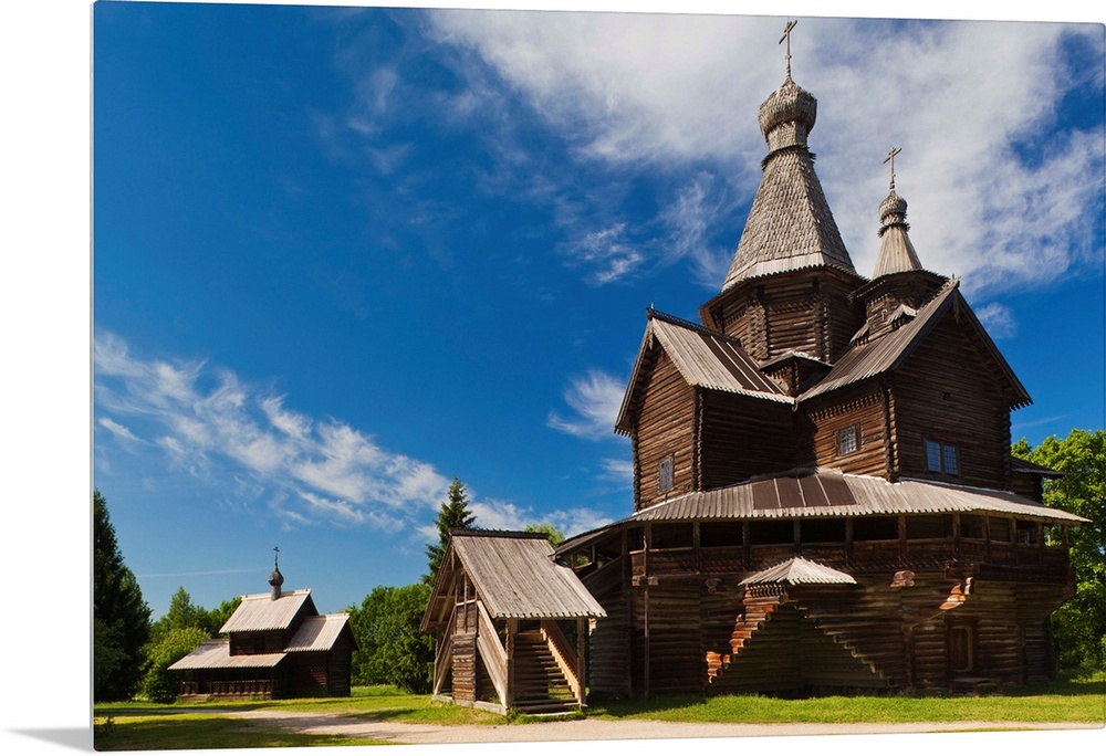 <p>Russia, Novgorod Oblast, Veliky Novgorod, Vitoslavitsky Museum of Wooden Architecture, traditional wooden Russian Orthodox church</p>
