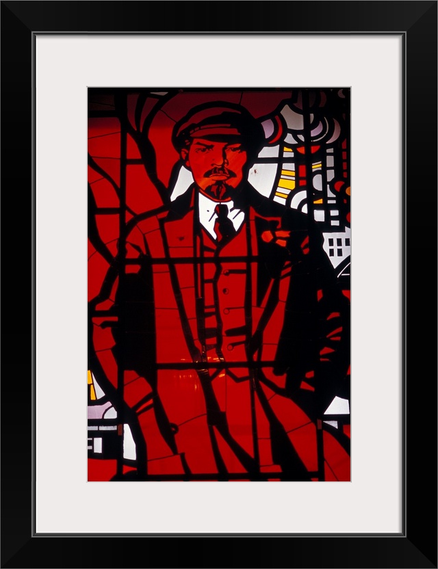 <p>Russia, Rossiya , Leningradskaya Oblast', Saint Petersburg, Museum of Russian Revolution, Lenin portrait on stained glass</p>