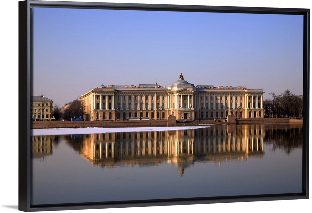 <p>Russia, St.Petersburg, Along the Neva river embarkement, the St.Petersburg Art Academy with reflection in the water.</p>