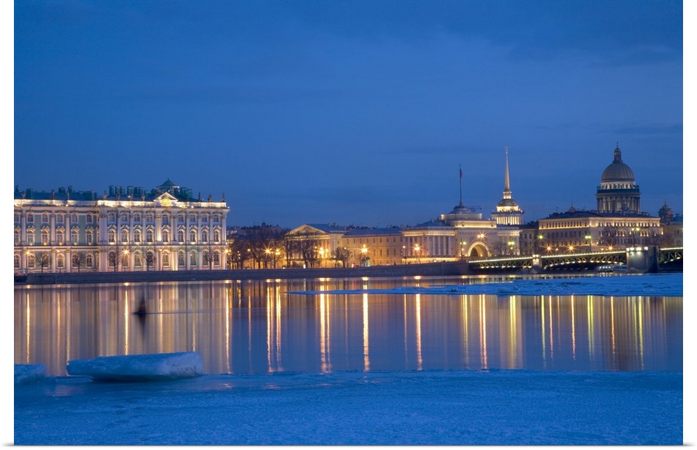<p>Russia, St.Petersburg, The partly frozen Neva River in Winter, with the Winter Palace, the Admiralty and St.Isaac's Cathedral.</p>