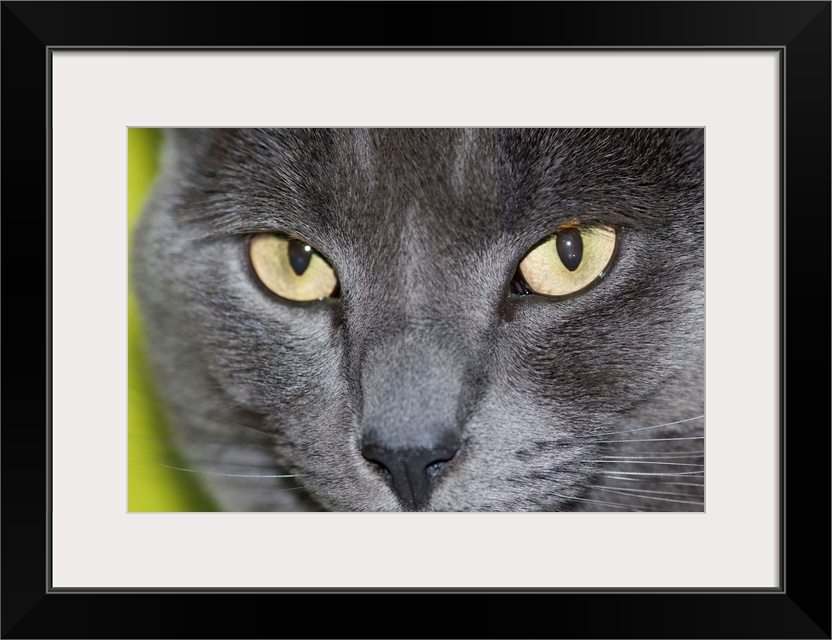 <p>UK, England, Blackheath; London, face close up, Russian Blue cat</p>