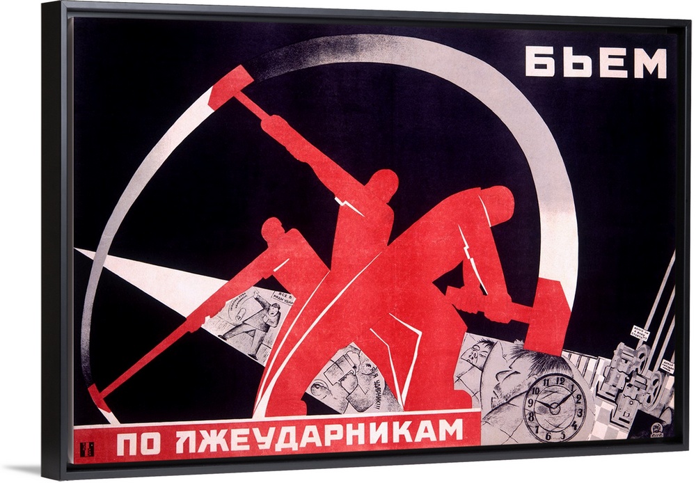 <p>Vintage black and white Russian Industrialism propaganda poster with pops of bright red.</p>