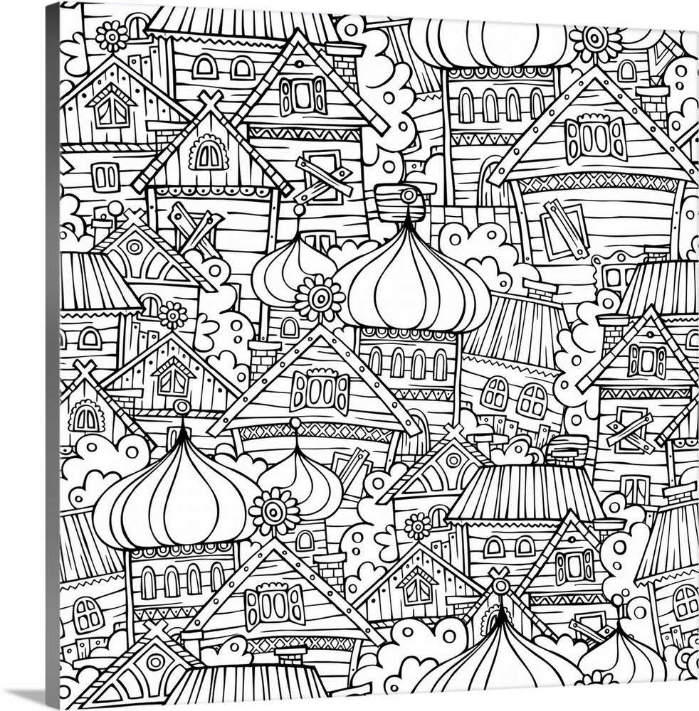 <p>A design featuring several traditional Russian houses and towers. Perfect for coloring canvas.</p>