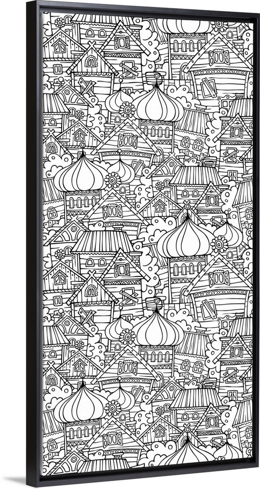 <p>A design featuring several traditional Russian houses and towers.</p>
