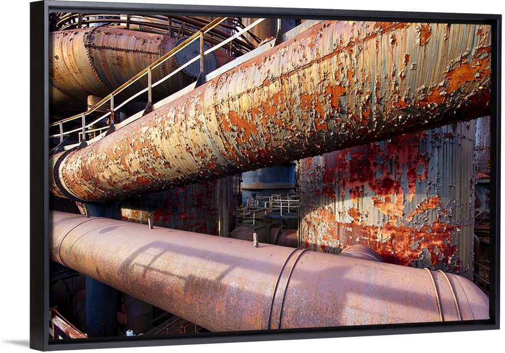 <p>Rusting Steel Pipes with a Paint Peeling Off, Bethlehem Steel, Pennsylvania.</p>
