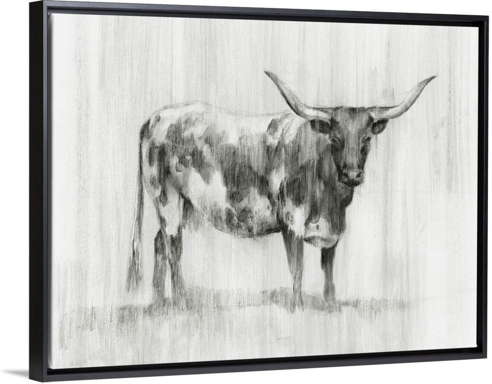 Art Rustic Out West Rustic Traditionalist Decorative Art Drawing Grey Wall Art Ethan Harper Illustrations Animal Illustrations Wildlife Cow