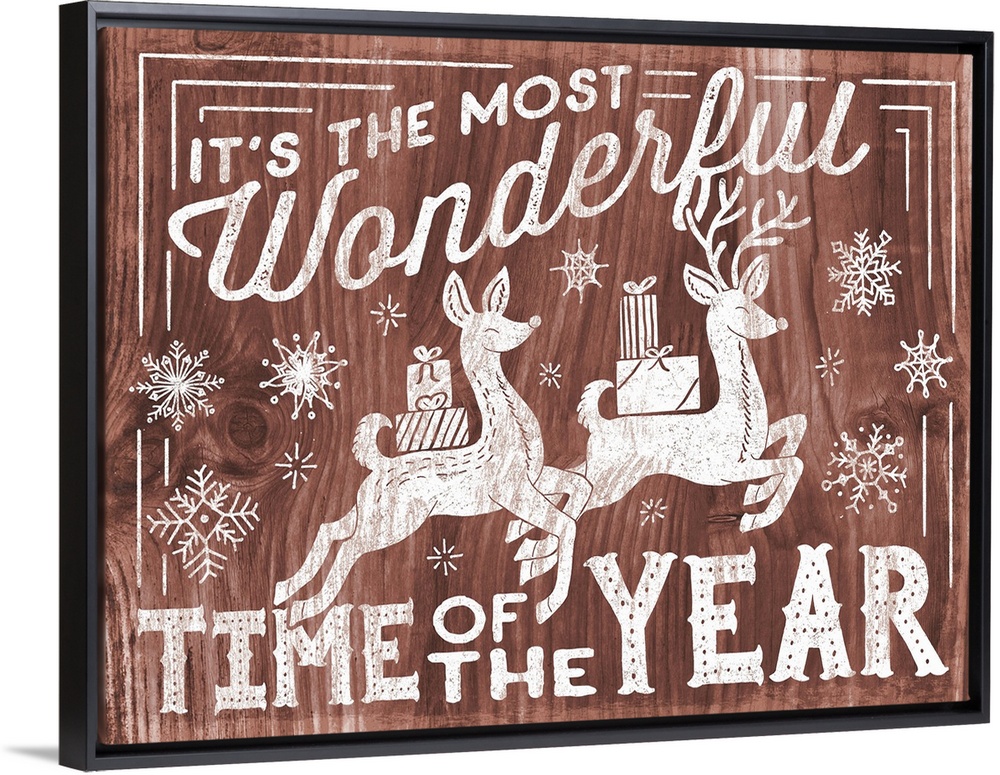 <p>"It's the Most Wonderful Time of the Year" decorative holiday art on a red wood background.</p>