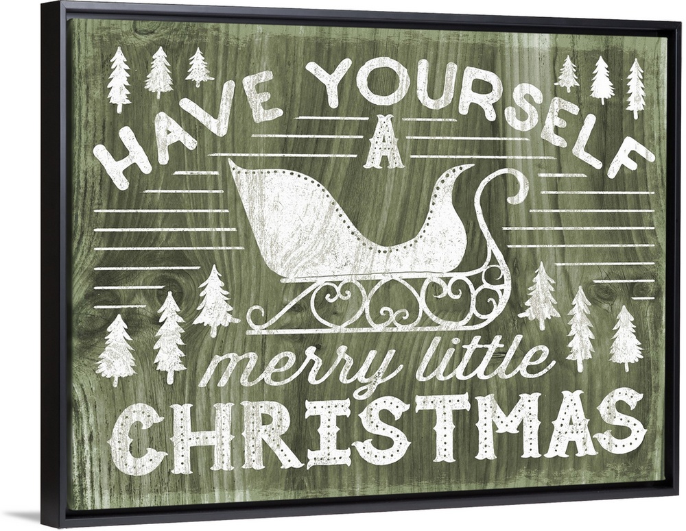 <p>"Have Yourself a Merry Little Christmas" decorative holiday art on a green wood background.</p>