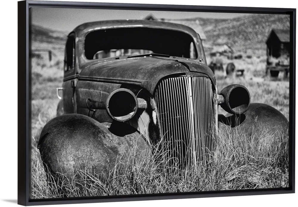 <p>Antique car body of a 1937 Chevrolet is rusting away, Bodie California.</p>