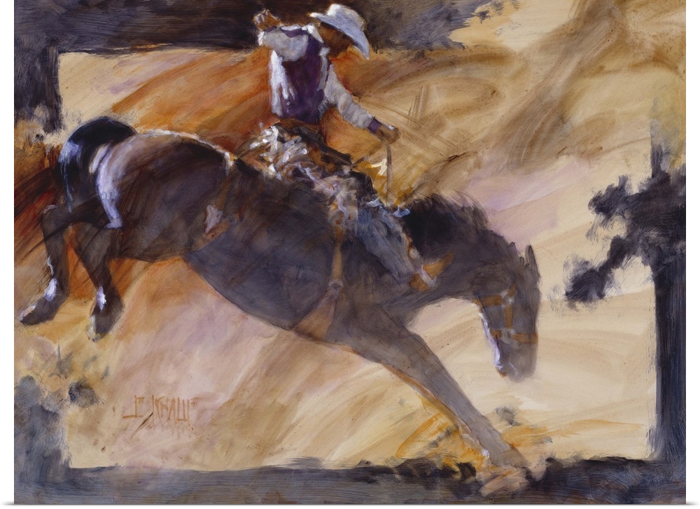<p>Contemporary western theme painting of a cowboy riding a bucking bronco.</p>
