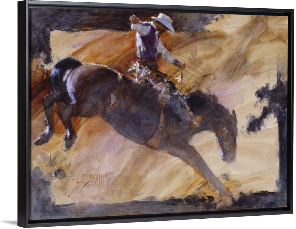 <p>Contemporary western theme painting of a cowboy riding a bucking bronco.</p>