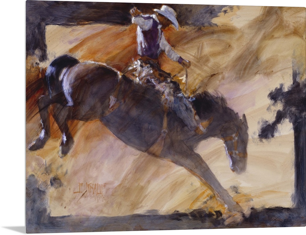 <p>Contemporary western theme painting of a cowboy riding a bucking bronco.</p>