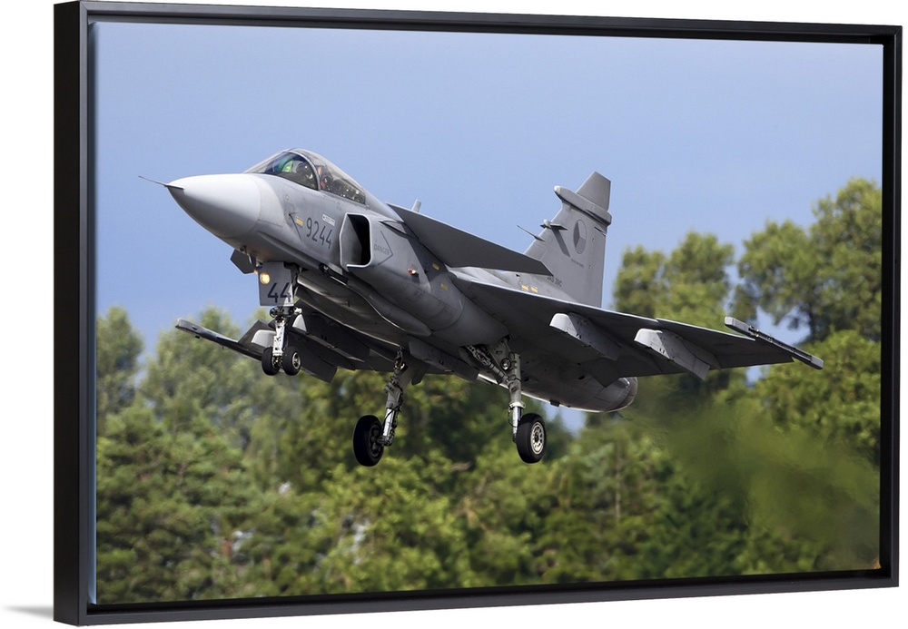 <p>Saab JAS-39C Gripen jet fighter of the Czech Air Force landing during RIAT-2017 airshow, Fairford, England, United Kingdom.</p>
