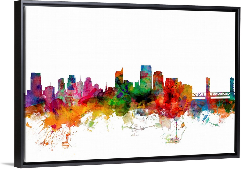 <p>Watercolor artwork of the Sacramento skyline against a white background.</p>