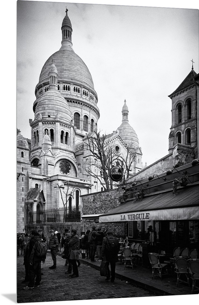 <p>Black and white photo of the Sacre Coeur Basilica, showing the dome architecture.</p>