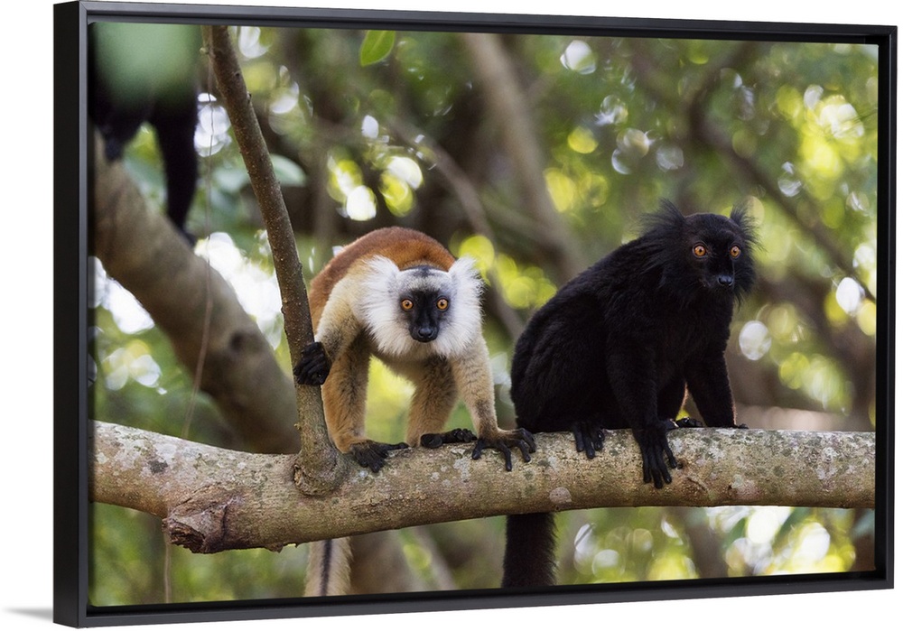 <p>Sacred Baobab tree, male and female black lemur (Eulemur macaco), Nosy Be Island, northern area, Madagascar, Africa</p>