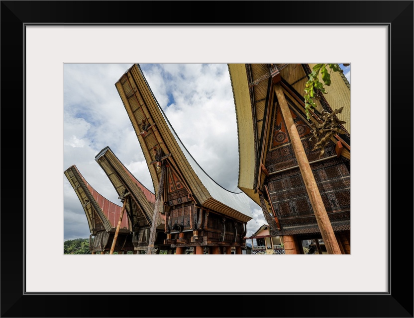 <p>Saddleback roof tongkonans (family rice barns) (homes), Parinding, north of Rantepao, Parinding, Toraja, South Sulawesi, Indonesia, Southeast Asia, Asia</p>