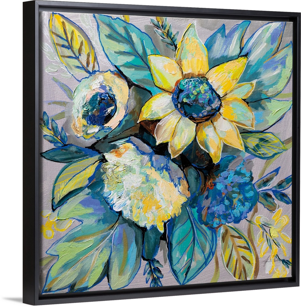 Art Transitional Contemporary Art Plants and Flowers Florals Sunflower Painting Jeanette Vertentes Yellow Wall Art