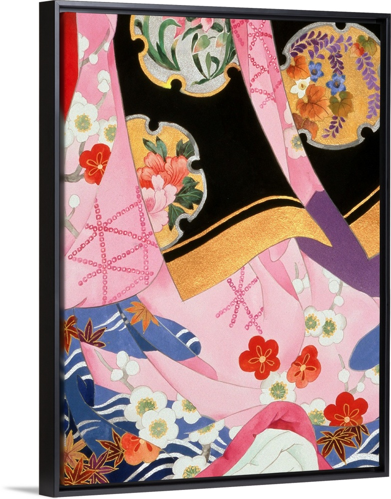 <p>Contemporary colorful and lavish looking Asian artwork. With different colored fabric patterns.</p>