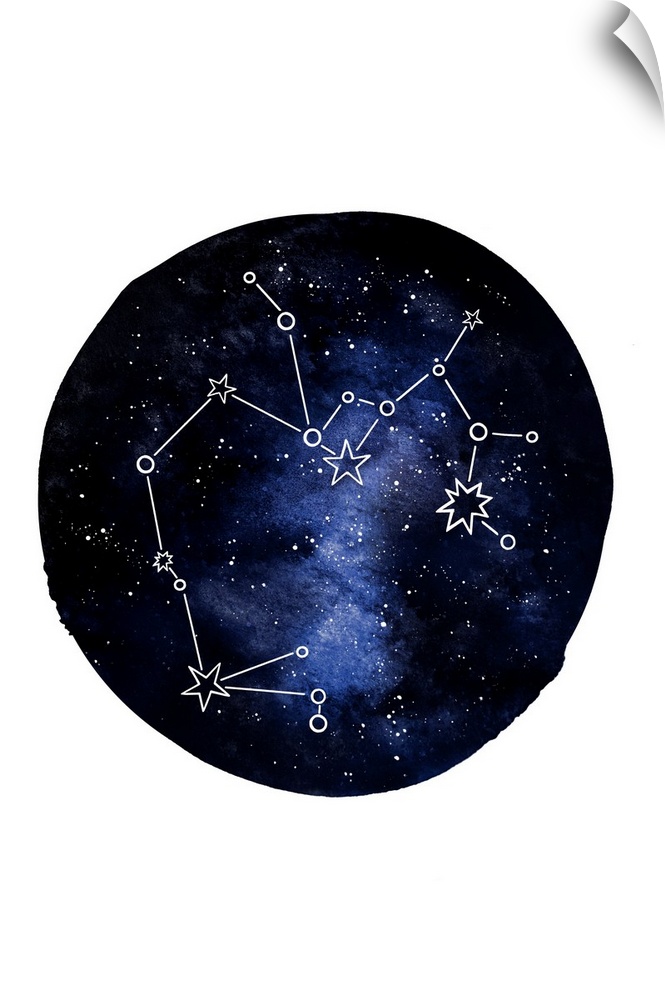 Art Astrology Blue Wall Art Decorative Art Space Stars Watercolor
