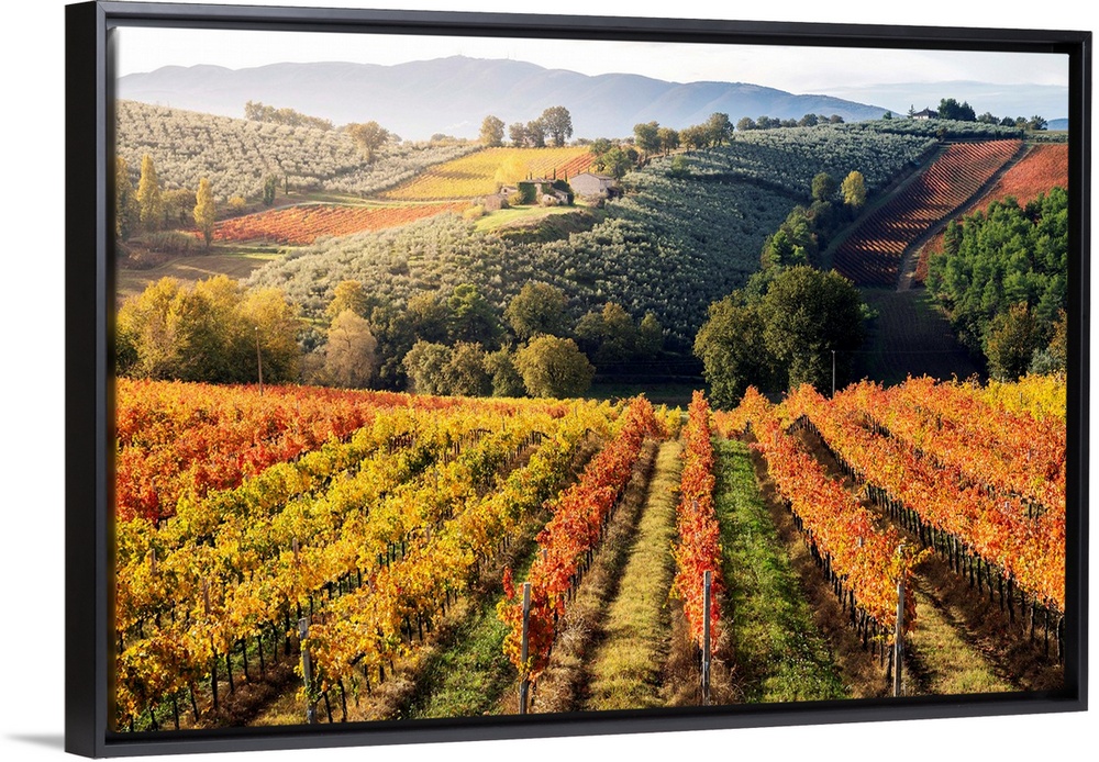 <p>Sagrantino Di Montefalco Vineyards In Autumn, Umbria, Italy.</p>