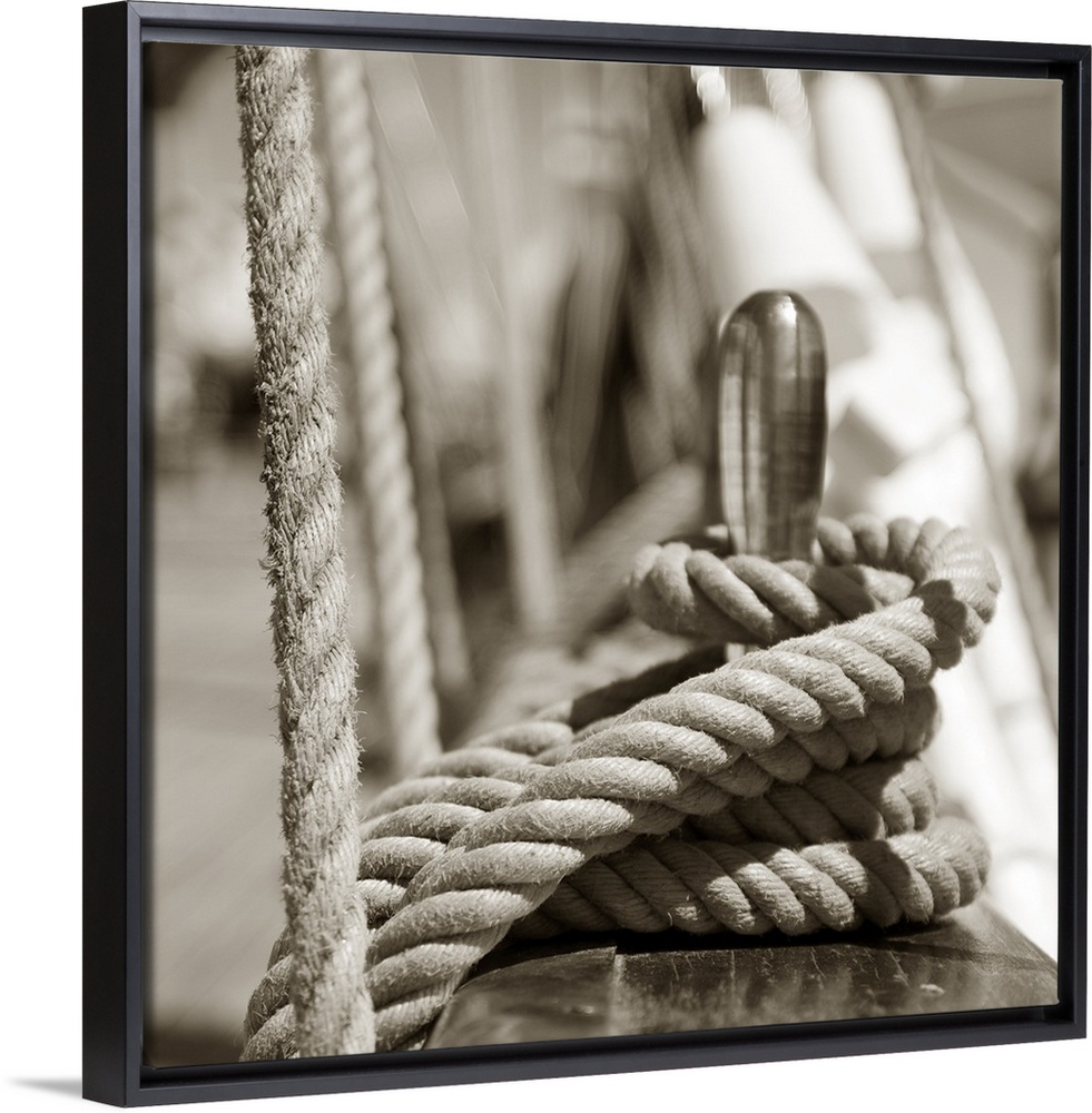 <p>Detail of rigging of old sail ship in monochrome.</p>