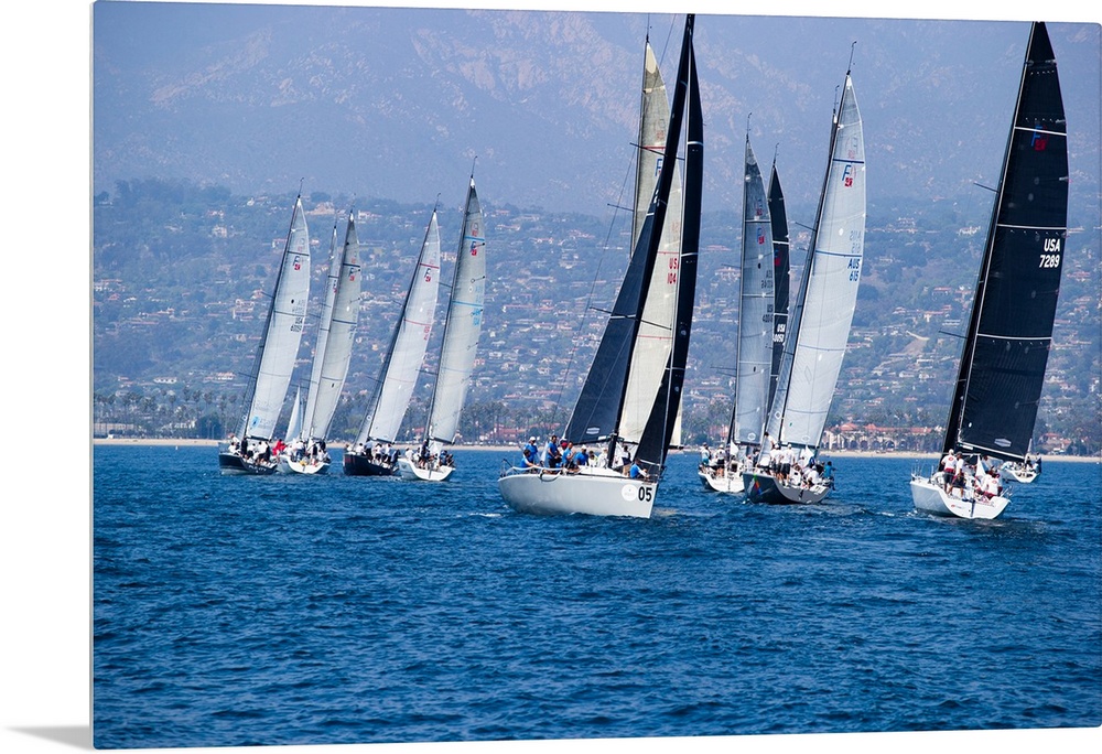 <p>Sailboat race in the Pacific Ocean, Santa Barbara Harbor, Santa Barbara, California, USA</p>