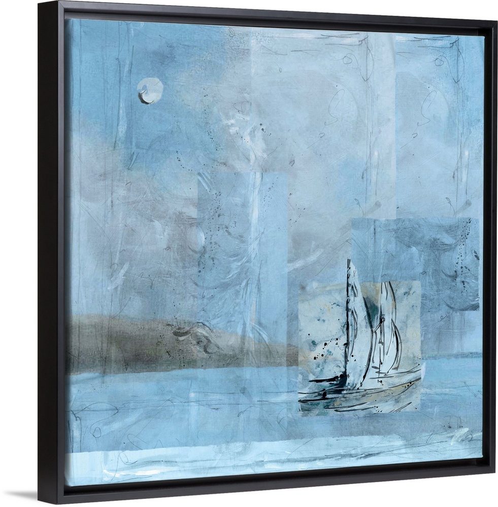 Art Coastal Blue Wall Art Contemporary Art Mixed Media Art Transportation Boat Sailboat Marta Wiley