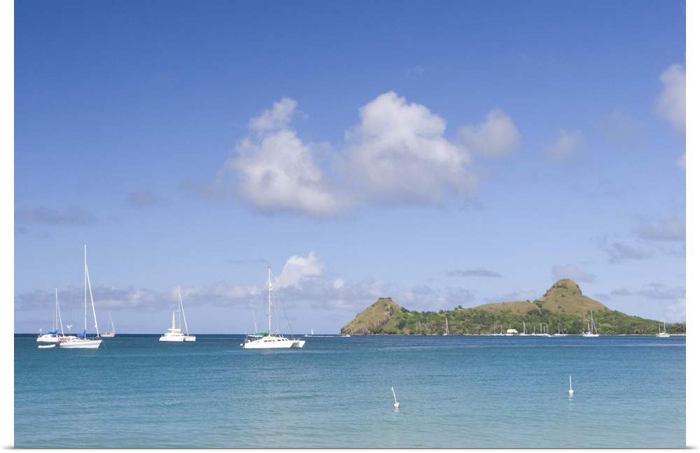 <p>Sailboats anchored off of Reduit beach on the island of St. Lucia in the southern Caribbean.</p>