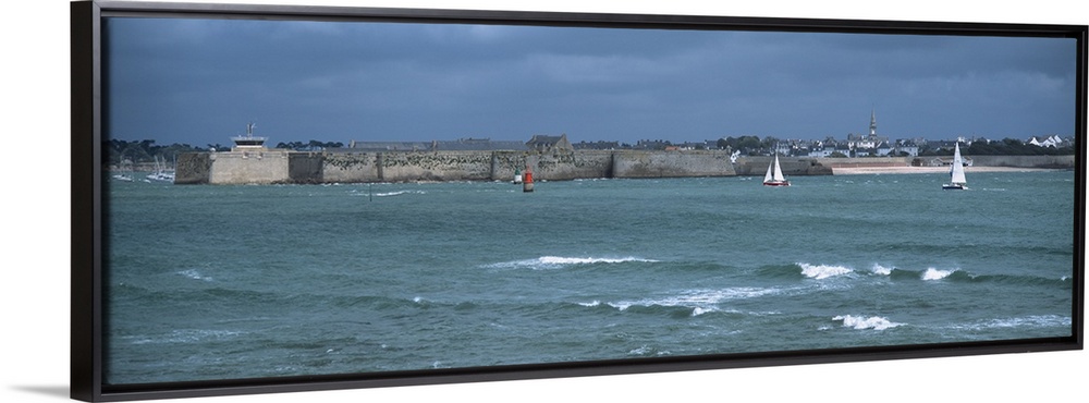 <p>Sailboats in front of citadel, Vauban Citadel, Port-Louis, Morbihan, Brittany, France</p>